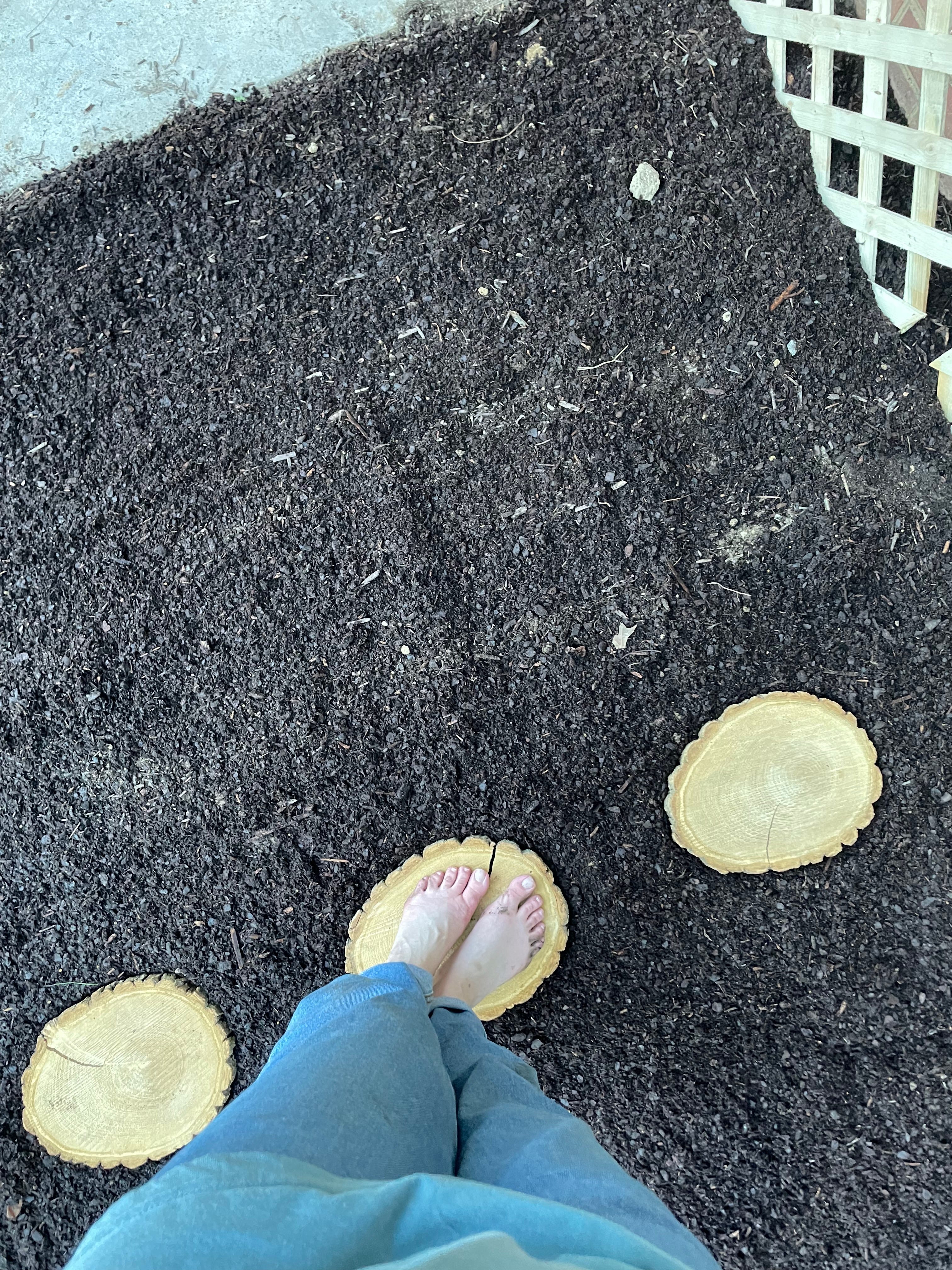 new soil, rich and dark and smelling of possibilities as it falls between my fingers.