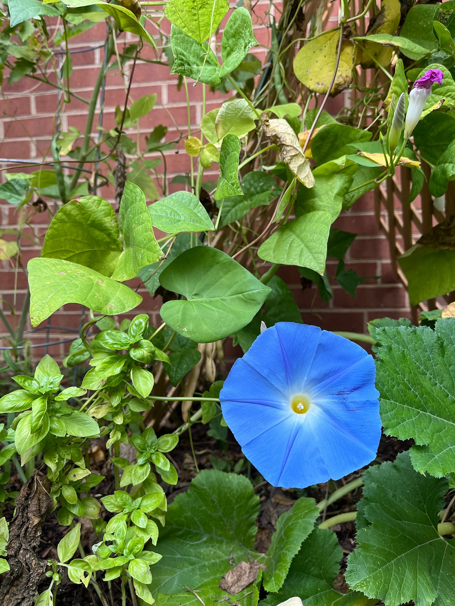 the garden is squeezing out the last zucchini and tomatoes, a knotted mess of vines and leaves and buds and pods.